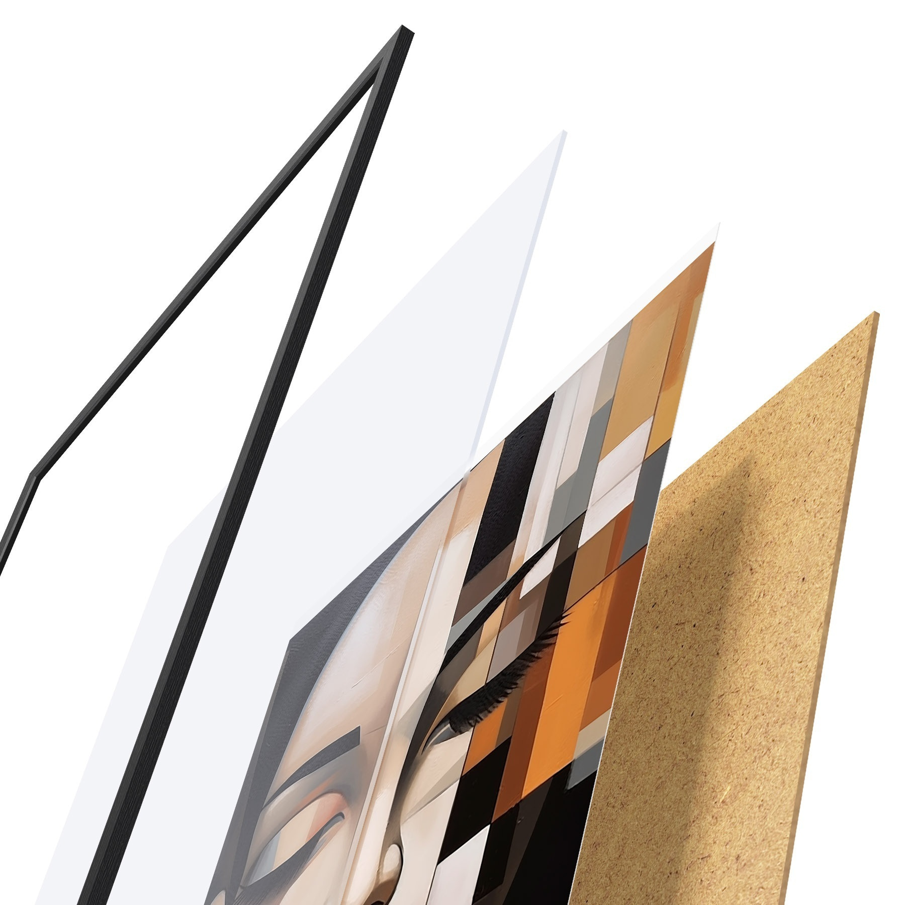 Plakatą sudaro rėmas, pleksiklas, atspausdintas vaizdas ir medžio drožlių plokštės pagrindas. Plakatą galima iš karto pakabinti ant sienos dėl kitoje pusėje esančių laikiklių.