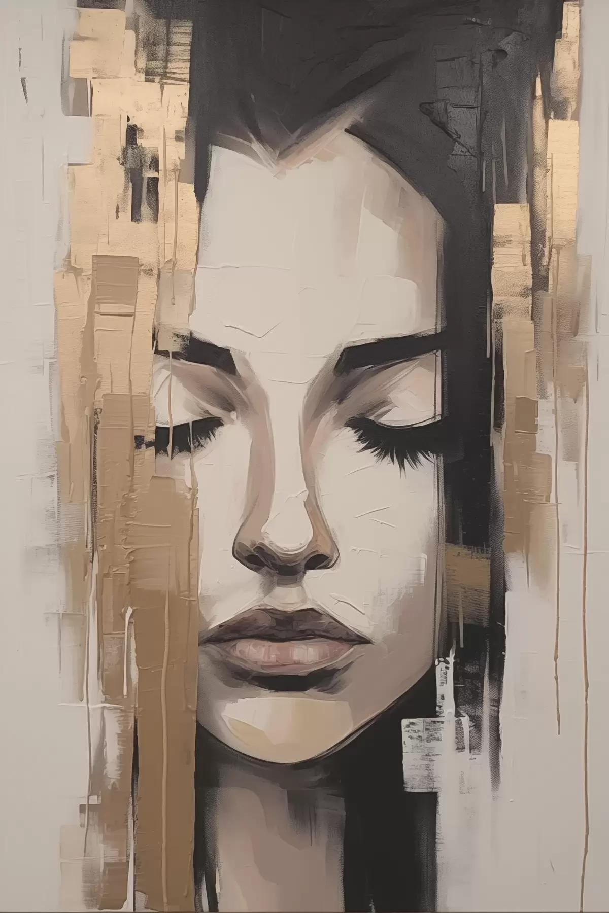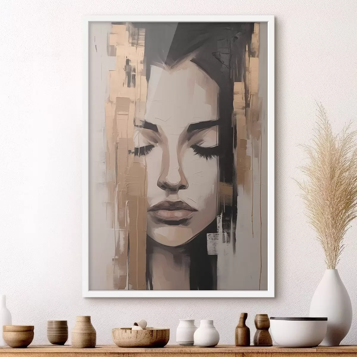 Plakatas Moteris portretas. Abstrakčios teptuko potėpiai f46733