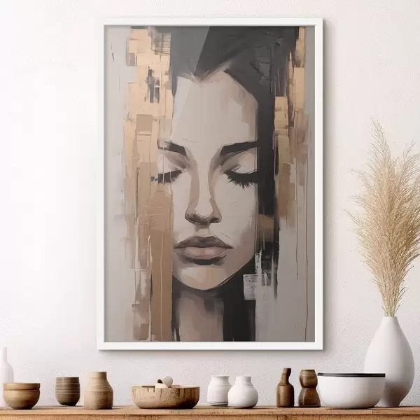Plakatas Moteris portretas. Abstrakčios teptuko potėpiai Ne f46733