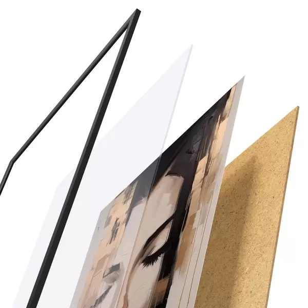 Plakatą sudaro rėmas, pleksiklas, atspausdintas vaizdas ir medžio drožlių plokštės pagrindas. Plakatą galima iš karto pakabinti ant sienos dėl kitoje pusėje esančių laikiklių.