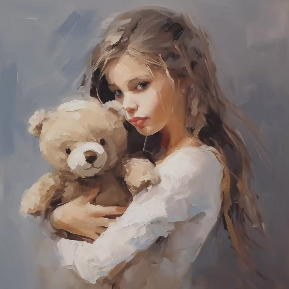 Plakatas Mergaitė su žaisliniu meškiuku, imitacija Ne f46746
