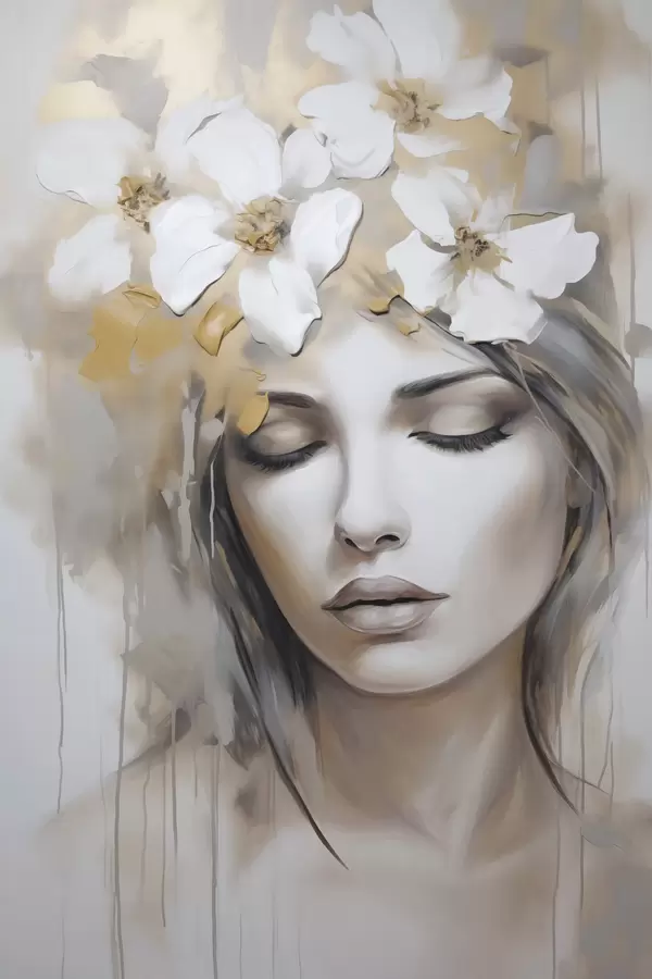 Plakatas Abstraktus merginos su gėlėmis portretas, tapybos imitacija f46756