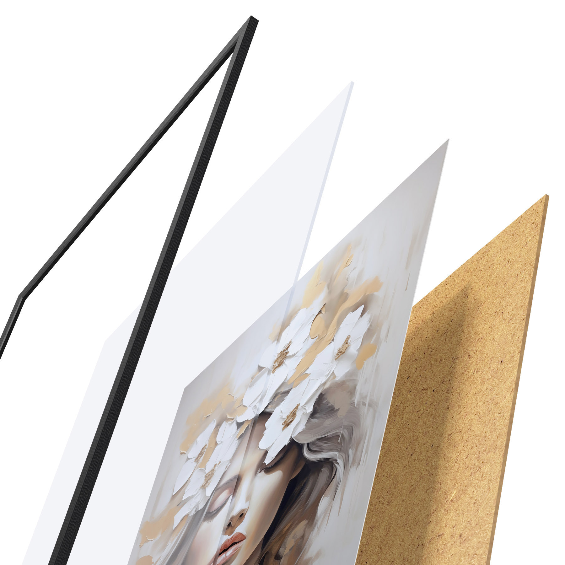 Plakatą sudaro rėmas, pleksiklas, atspausdintas vaizdas ir medžio drožlių plokštės pagrindas. Plakatą galima iš karto pakabinti ant sienos dėl kitoje pusėje esančių laikiklių.