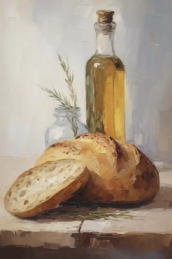 Plakatas Duona ir aliejaus butelis, imitacijos tapyba f46759