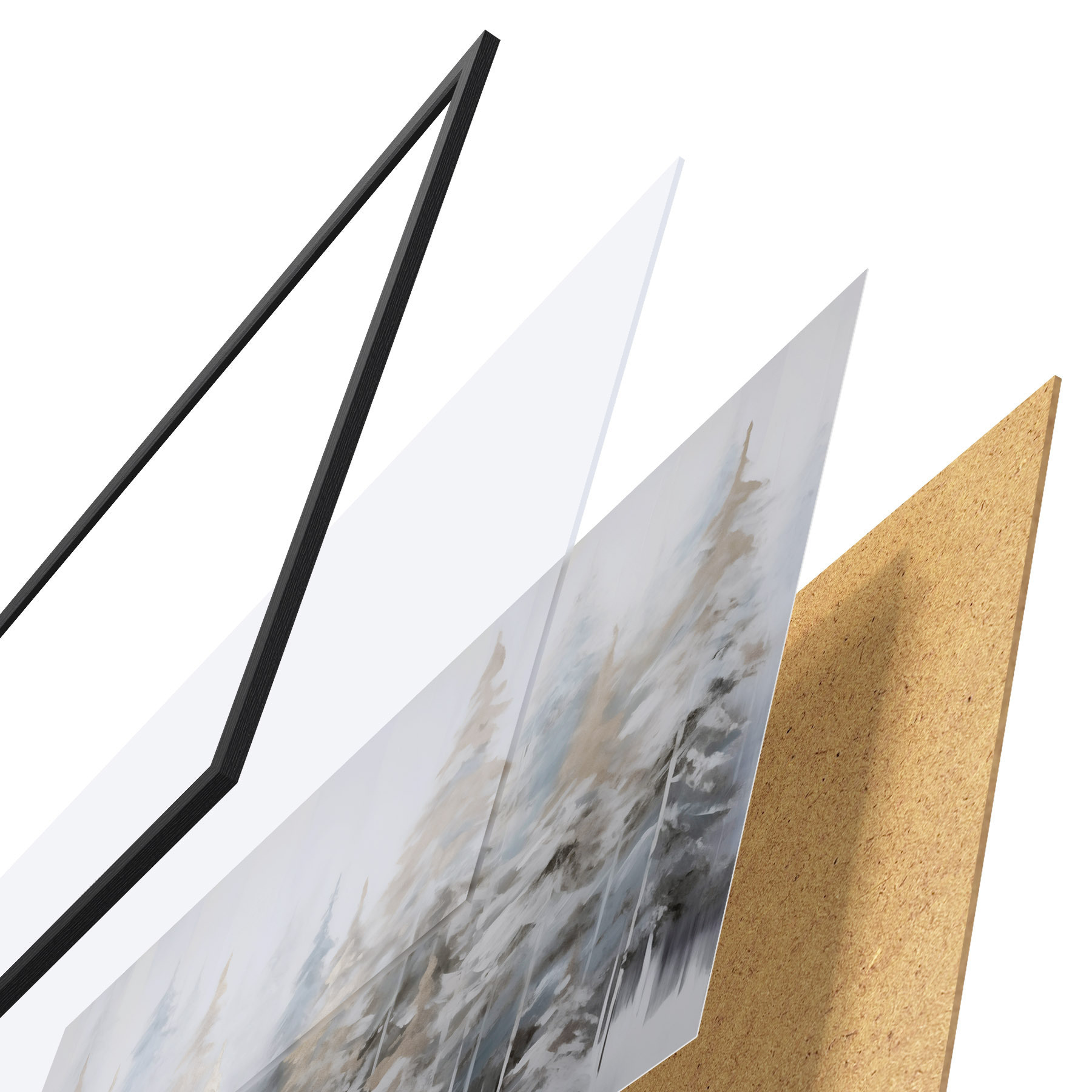 Plakatą sudaro rėmas, pleksiklas, atspausdintas vaizdas ir medžio drožlių plokštės pagrindas. Plakatą galima iš karto pakabinti ant sienos dėl kitoje pusėje esančių laikiklių.