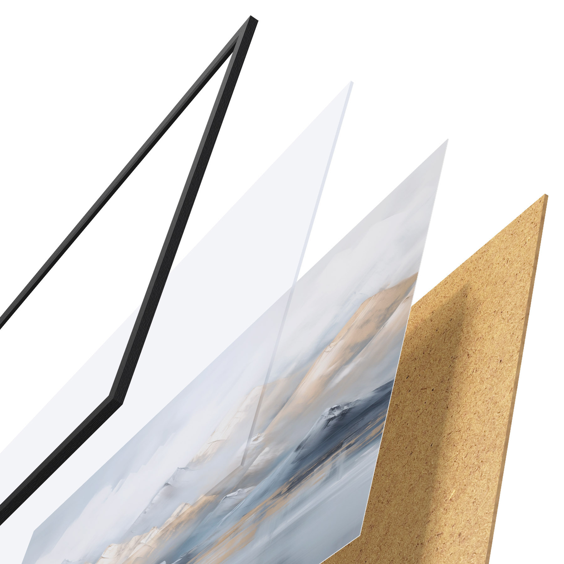 Plakatą sudaro rėmas, pleksiklas, atspausdintas vaizdas ir medžio drožlių plokštės pagrindas. Plakatą galima iš karto pakabinti ant sienos dėl kitoje pusėje esančių laikiklių.