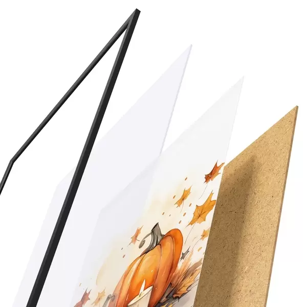 Plakatą sudaro rėmas, pleksiklas, atspausdintas vaizdas ir medžio drožlių plokštės pagrindas. Plakatą galima iš karto pakabinti ant sienos dėl kitoje pusėje esančių laikiklių.
