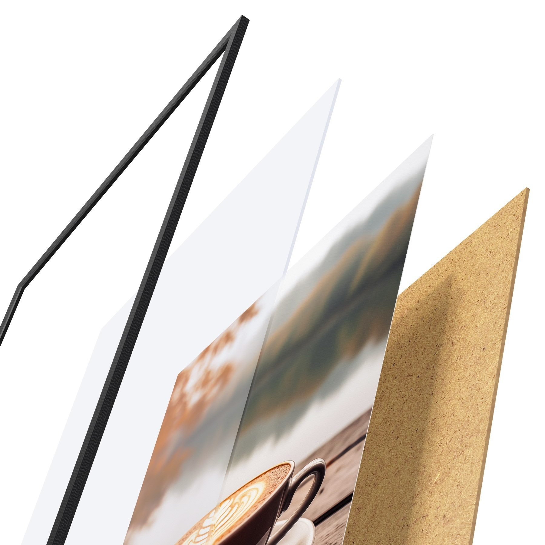 Plakatą sudaro rėmas, pleksiklas, atspausdintas vaizdas ir medžio drožlių plokštės pagrindas. Plakatą galima iš karto pakabinti ant sienos dėl kitoje pusėje esančių laikiklių.