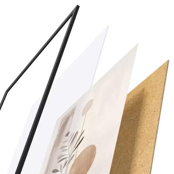 Plakatą sudaro rėmas, pleksiklas, atspausdintas vaizdas ir medžio drožlių plokštės pagrindas. Plakatą galima iš karto pakabinti ant sienos dėl kitoje pusėje esančių laikiklių.