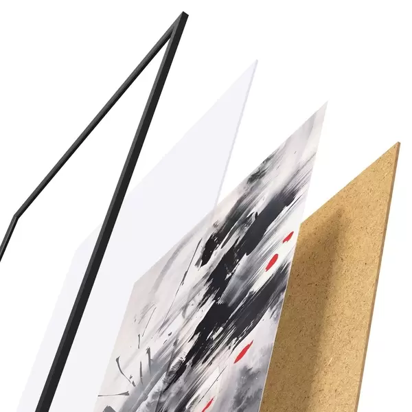Plakatą sudaro rėmas, pleksiklas, atspausdintas vaizdas ir medžio drožlių plokštės pagrindas. Plakatą galima iš karto pakabinti ant sienos dėl kitoje pusėje esančių laikiklių.