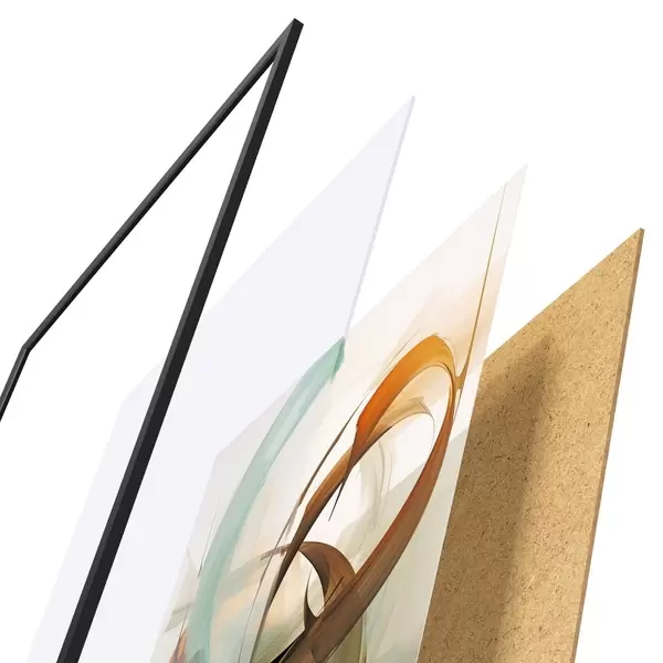 Plakatą sudaro rėmas, pleksiklas, atspausdintas vaizdas ir medžio drožlių plokštės pagrindas. Plakatą galima iš karto pakabinti ant sienos dėl kitoje pusėje esančių laikiklių.