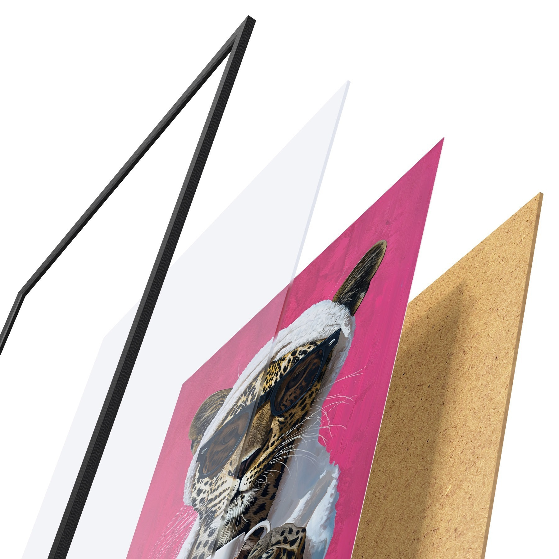 Plakatą sudaro rėmas, pleksiklas, atspausdintas vaizdas ir medžio drožlių plokštės pagrindas. Plakatą galima iš karto pakabinti ant sienos dėl kitoje pusėje esančių laikiklių.