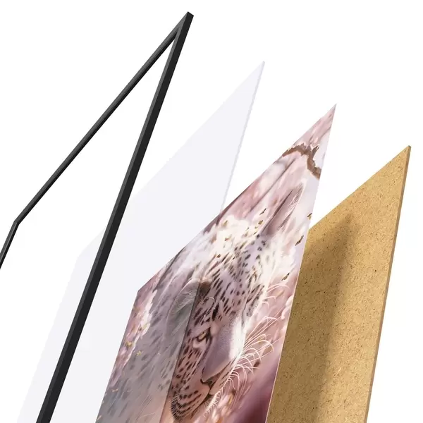Plakatą sudaro rėmas, pleksiklas, atspausdintas vaizdas ir medžio drožlių plokštės pagrindas. Plakatą galima iš karto pakabinti ant sienos dėl kitoje pusėje esančių laikiklių.