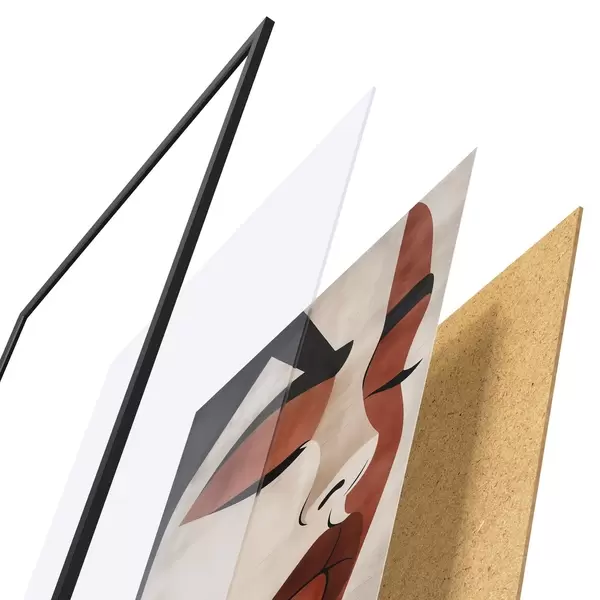 Plakatą sudaro rėmas, pleksiklas, atspausdintas vaizdas ir medžio drožlių plokštės pagrindas. Plakatą galima iš karto pakabinti ant sienos dėl kitoje pusėje esančių laikiklių.