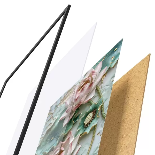 Plakatą sudaro rėmas, pleksiklas, atspausdintas vaizdas ir medžio drožlių plokštės pagrindas. Plakatą galima iš karto pakabinti ant sienos dėl kitoje pusėje esančių laikiklių.