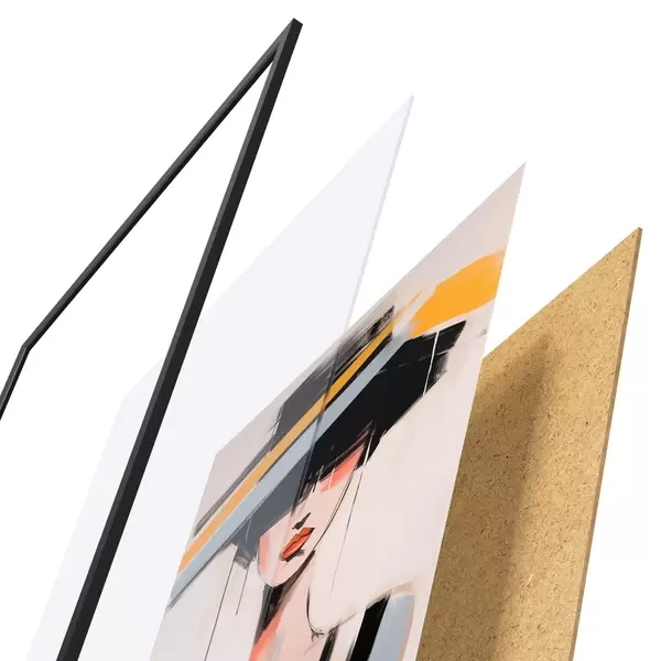 Plakatą sudaro rėmas, pleksiklas, atspausdintas vaizdas ir medžio drožlių plokštės pagrindas. Plakatą galima iš karto pakabinti ant sienos dėl kitoje pusėje esančių laikiklių.