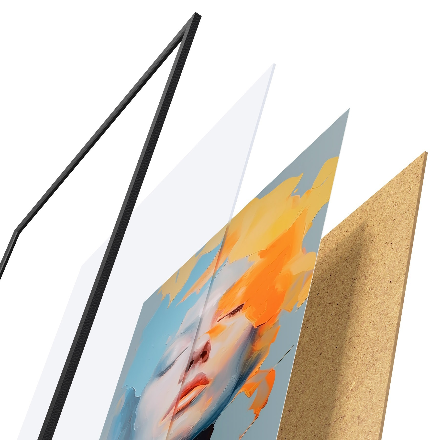 Plakatą sudaro rėmas, pleksiklas, atspausdintas vaizdas ir medžio drožlių plokštės pagrindas. Plakatą galima iš karto pakabinti ant sienos dėl kitoje pusėje esančių laikiklių.