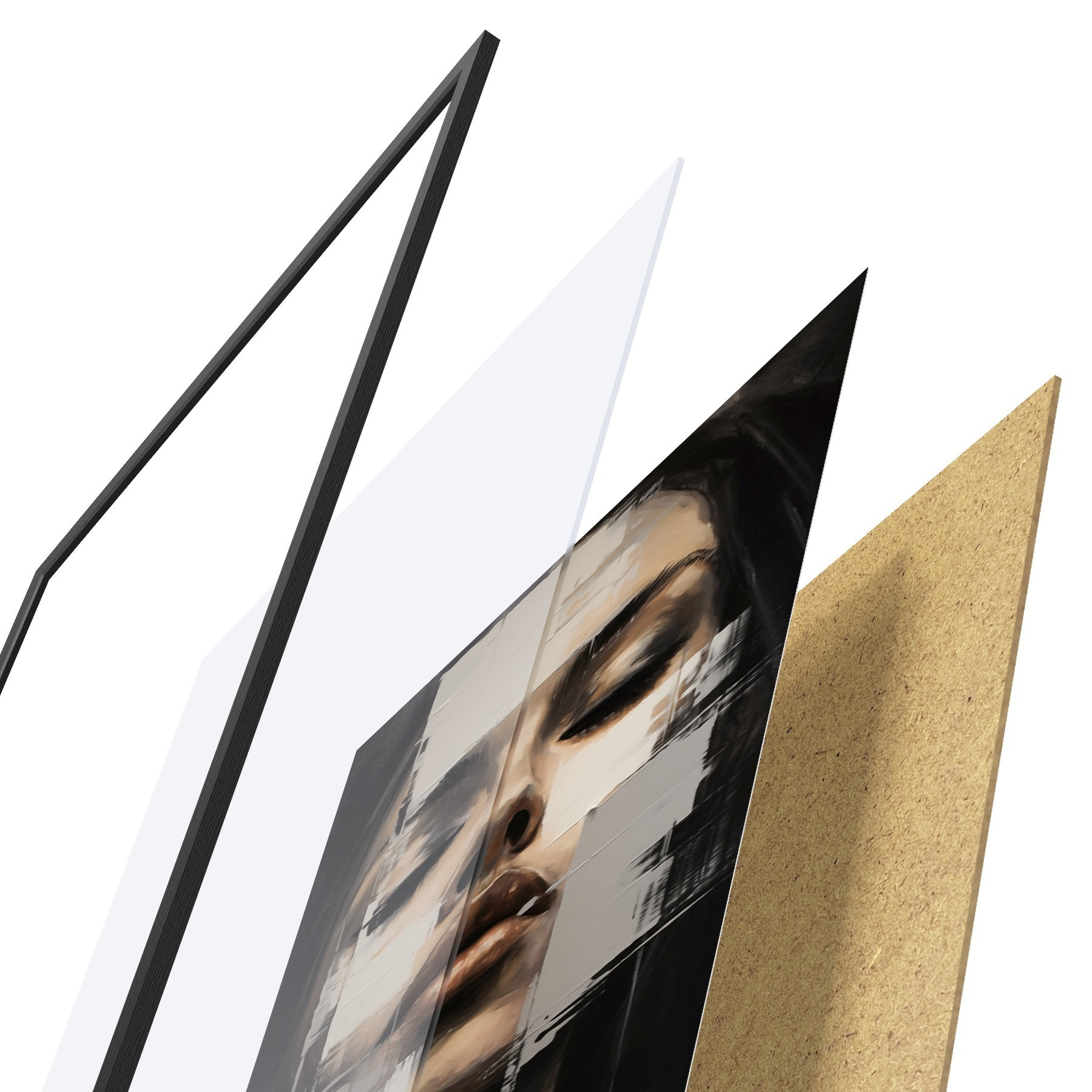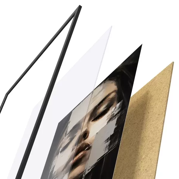 Plakatą sudaro rėmas, pleksiklas, atspausdintas vaizdas ir medžio drožlių plokštės pagrindas. Plakatą galima iš karto pakabinti ant sienos dėl kitoje pusėje esančių laikiklių.