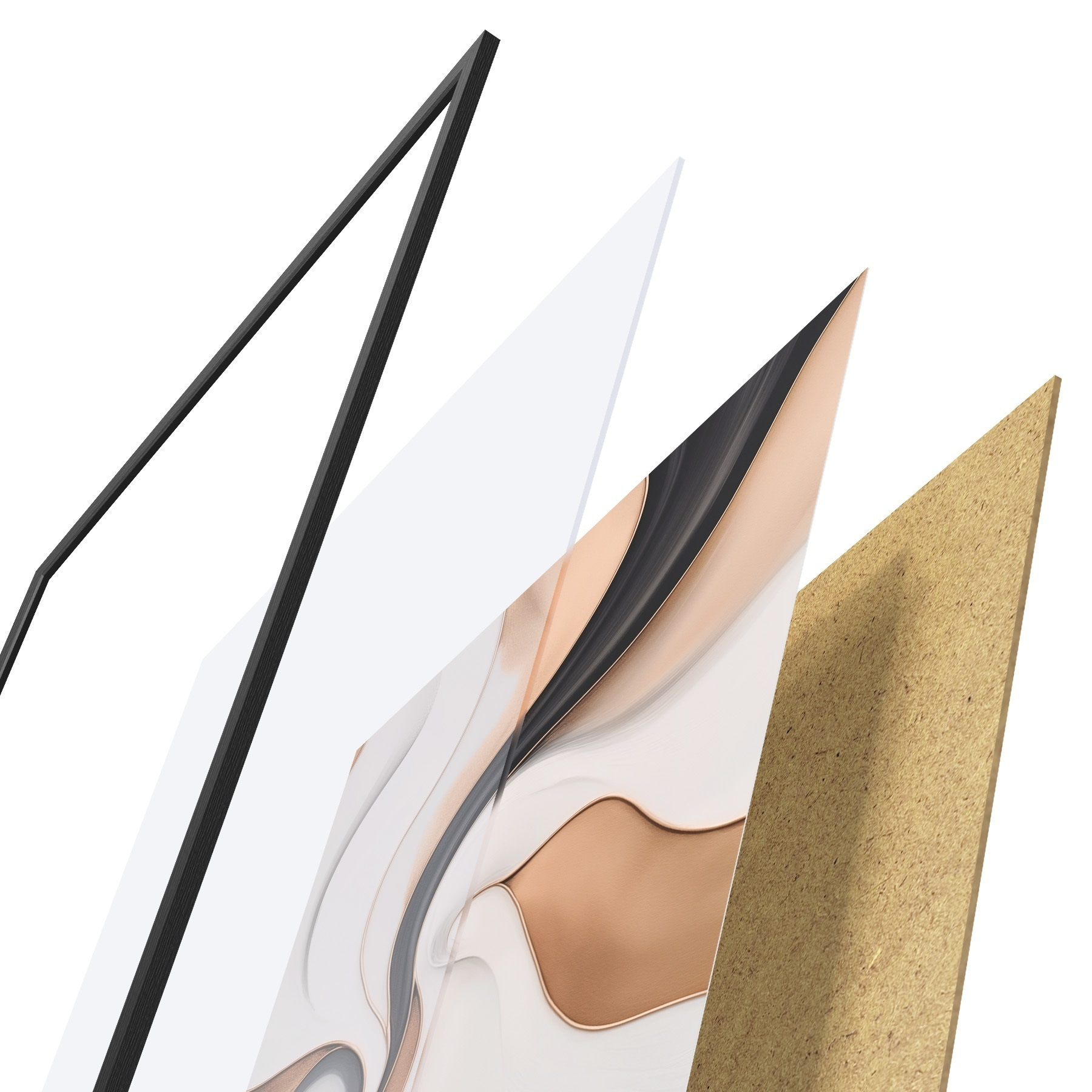 Plakatą sudaro rėmas, pleksiklas, atspausdintas vaizdas ir medžio drožlių plokštės pagrindas. Plakatą galima iš karto pakabinti ant sienos dėl kitoje pusėje esančių laikiklių.
