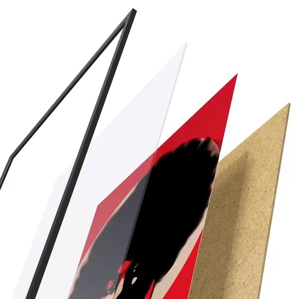 Plakatą sudaro rėmas, pleksiklas, atspausdintas vaizdas ir medžio drožlių plokštės pagrindas. Plakatą galima iš karto pakabinti ant sienos dėl kitoje pusėje esančių laikiklių.