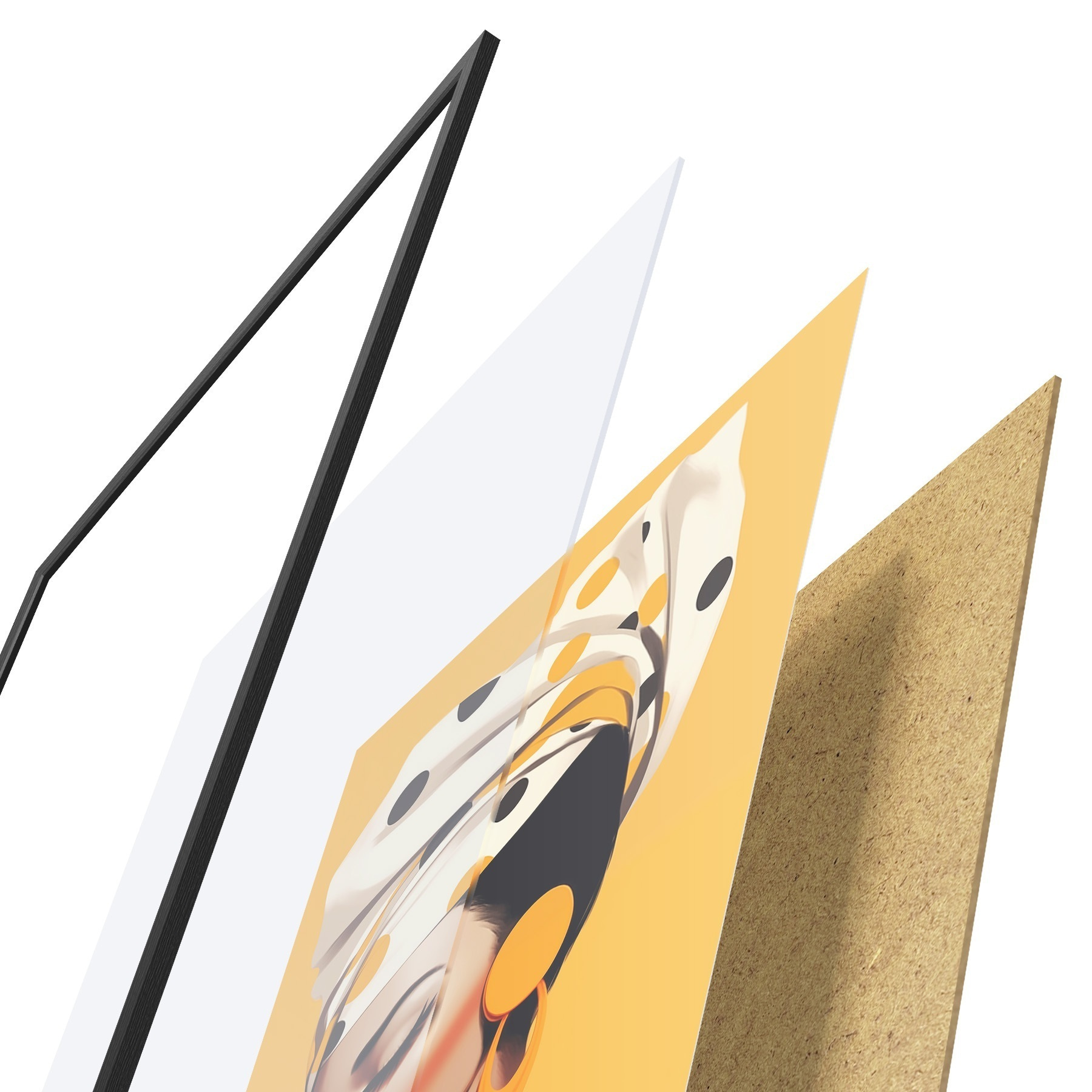 Plakatą sudaro rėmas, pleksiklas, atspausdintas vaizdas ir medžio drožlių plokštės pagrindas. Plakatą galima iš karto pakabinti ant sienos dėl kitoje pusėje esančių laikiklių.