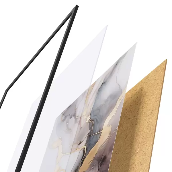 Plakatą sudaro rėmas, pleksiklas, atspausdintas vaizdas ir medžio drožlių plokštės pagrindas. Plakatą galima iš karto pakabinti ant sienos dėl kitoje pusėje esančių laikiklių.