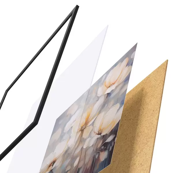Plakatą sudaro rėmas, pleksiklas, atspausdintas vaizdas ir medžio drožlių plokštės pagrindas. Plakatą galima iš karto pakabinti ant sienos dėl kitoje pusėje esančių laikiklių.