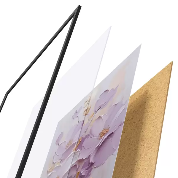 Plakatą sudaro rėmas, pleksiklas, atspausdintas vaizdas ir medžio drožlių plokštės pagrindas. Plakatą galima iš karto pakabinti ant sienos dėl kitoje pusėje esančių laikiklių.