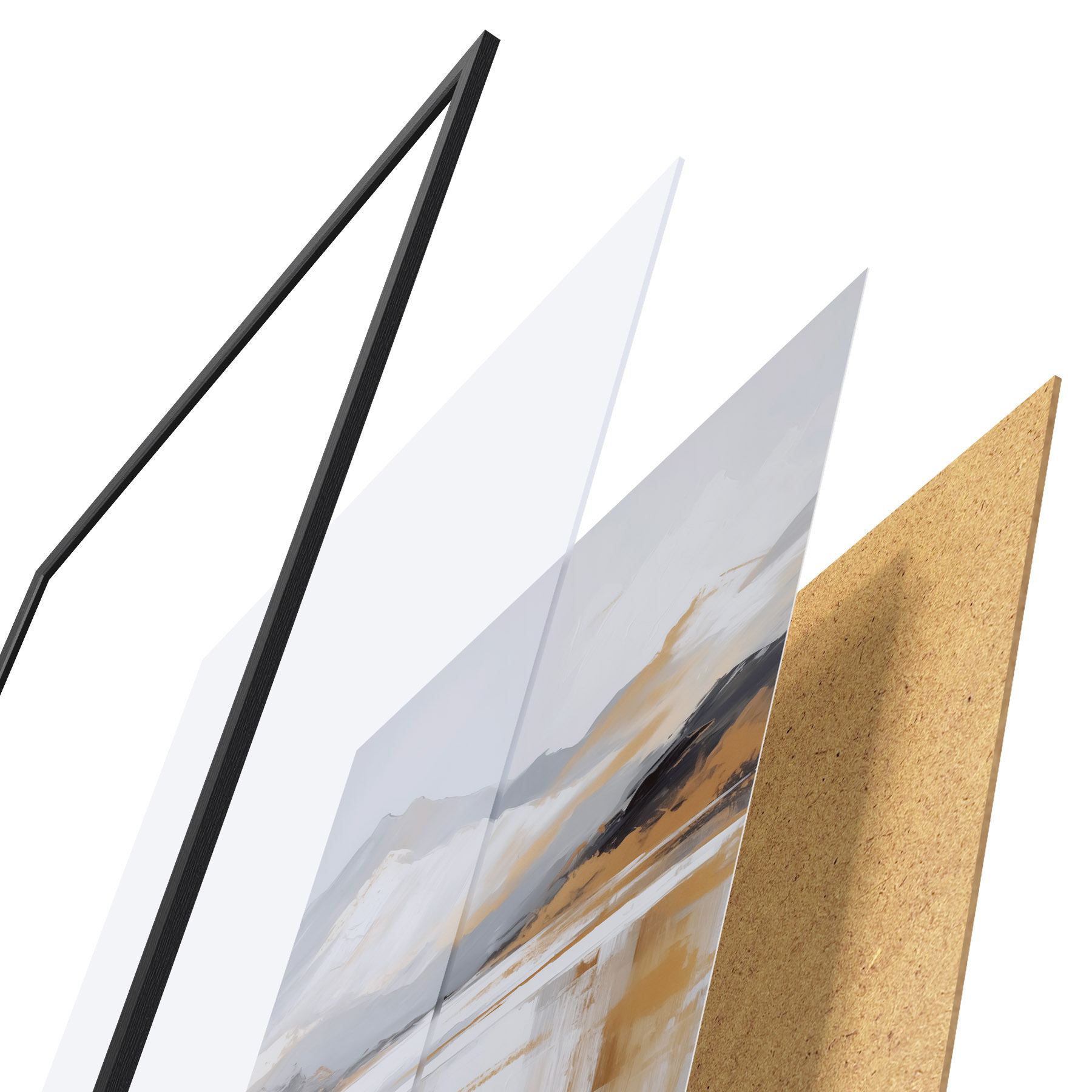 Plakatą sudaro rėmas, pleksiklas, atspausdintas vaizdas ir medžio drožlių plokštės pagrindas. Plakatą galima iš karto pakabinti ant sienos dėl kitoje pusėje esančių laikiklių.