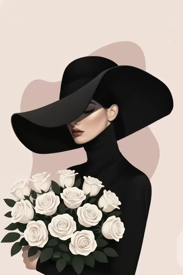 Plakatas Mergina su rožių puokšte f46854