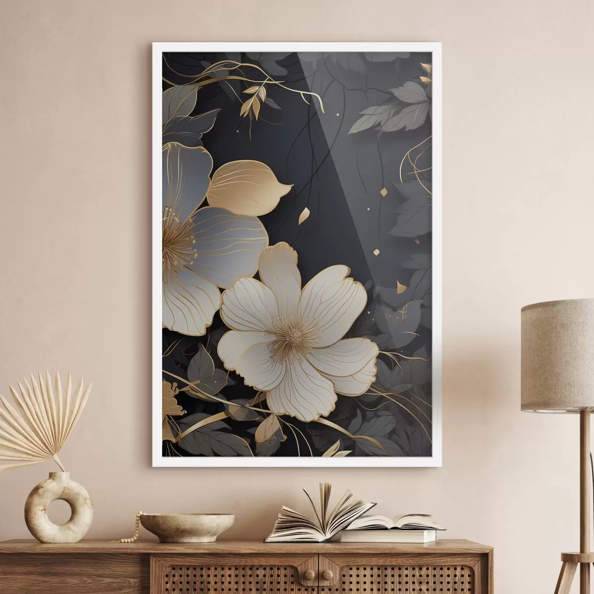 Plakatas Didelės gėlės ant tamsaus fono f46885