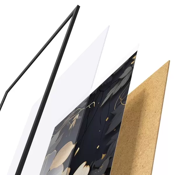 Plakatą sudaro rėmas, pleksiklas, atspausdintas vaizdas ir medžio drožlių plokštės pagrindas. Plakatą galima iš karto pakabinti ant sienos dėl kitoje pusėje esančių laikiklių.
