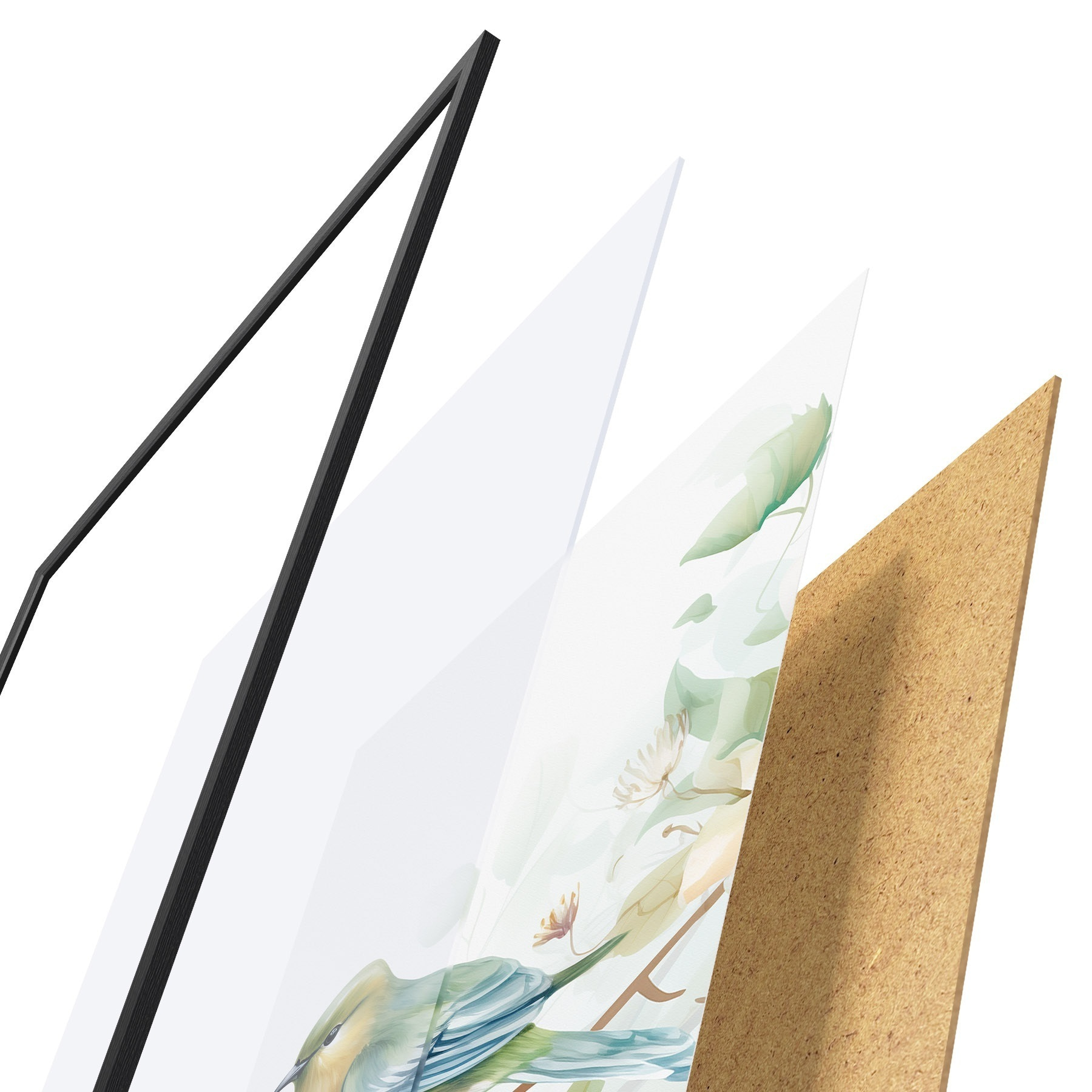 Plakatą sudaro rėmas, pleksiklas, atspausdintas vaizdas ir medžio drožlių plokštės pagrindas. Plakatą galima iš karto pakabinti ant sienos dėl kitoje pusėje esančių laikiklių.