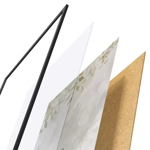 Plakatą sudaro rėmas, pleksiklas, atspausdintas vaizdas ir medžio drožlių plokštės pagrindas. Plakatą galima iš karto pakabinti ant sienos dėl kitoje pusėje esančių laikiklių.