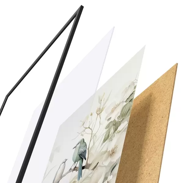 Plakatą sudaro rėmas, pleksiklas, atspausdintas vaizdas ir medžio drožlių plokštės pagrindas. Plakatą galima iš karto pakabinti ant sienos dėl kitoje pusėje esančių laikiklių.