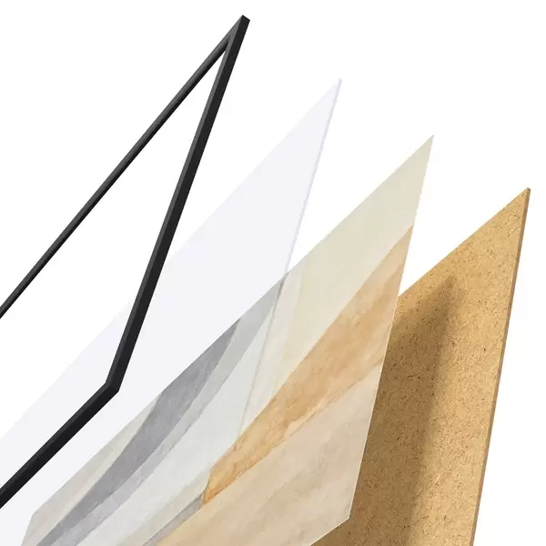 Plakatą sudaro rėmas, pleksiklas, atspausdintas vaizdas ir medžio drožlių plokštės pagrindas. Plakatą galima iš karto pakabinti ant sienos dėl kitoje pusėje esančių laikiklių.