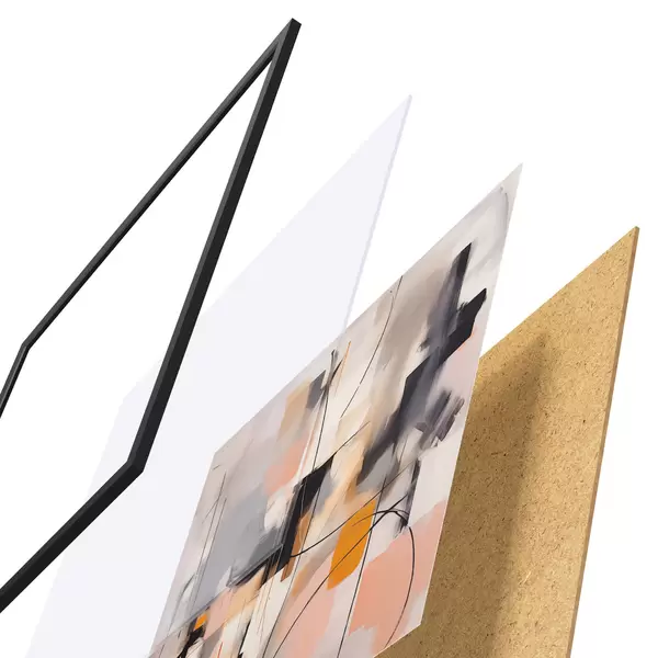 Plakatą sudaro rėmas, pleksiklas, atspausdintas vaizdas ir medžio drožlių plokštės pagrindas. Plakatą galima iš karto pakabinti ant sienos dėl kitoje pusėje esančių laikiklių.