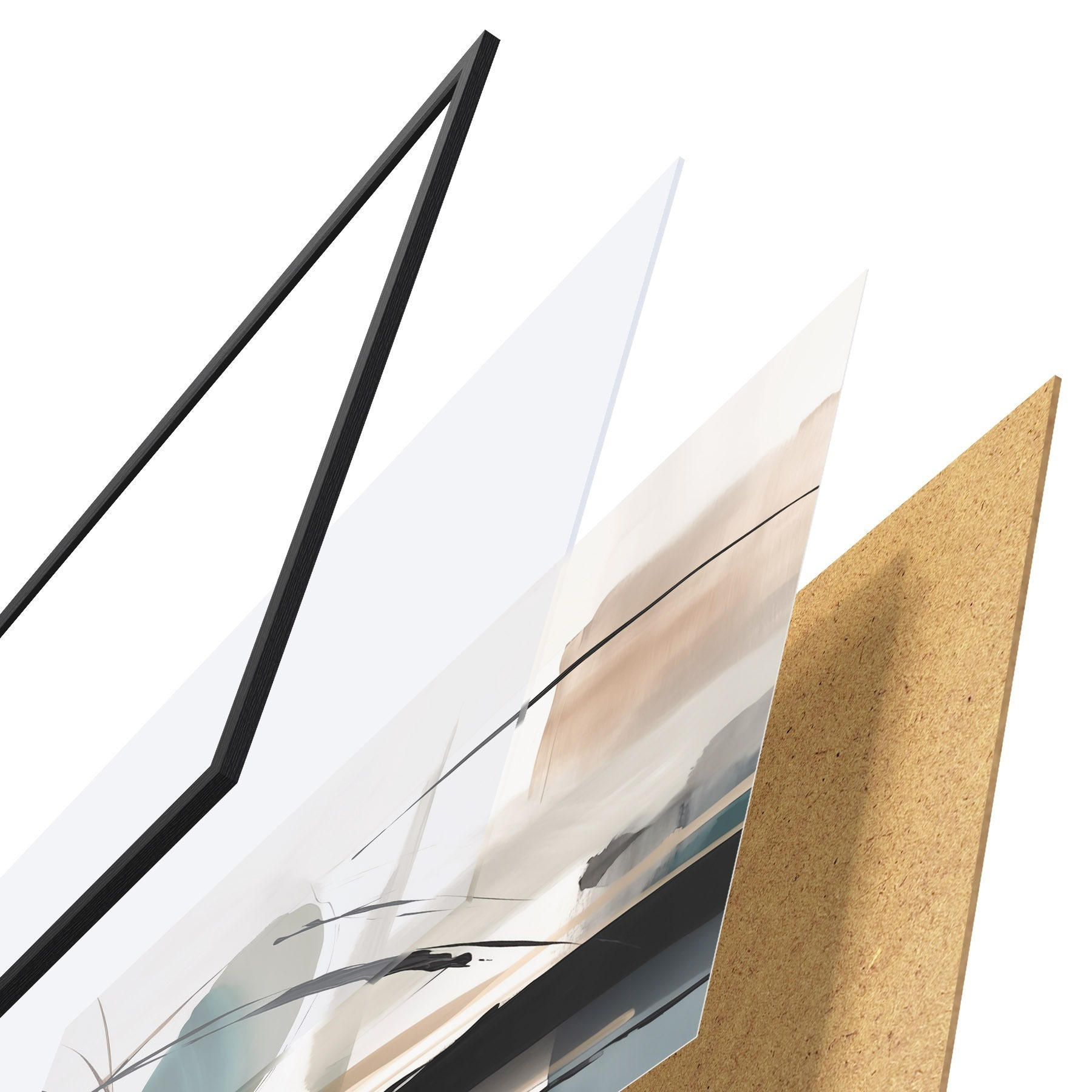 Plakatą sudaro rėmas, pleksiklas, atspausdintas vaizdas ir medžio drožlių plokštės pagrindas. Plakatą galima iš karto pakabinti ant sienos dėl kitoje pusėje esančių laikiklių.