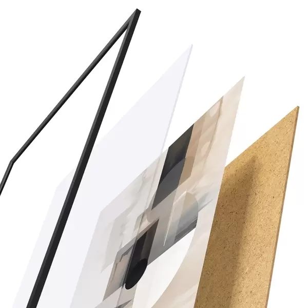 Plakatą sudaro rėmas, pleksiklas, atspausdintas vaizdas ir medžio drožlių plokštės pagrindas. Plakatą galima iš karto pakabinti ant sienos dėl kitoje pusėje esančių laikiklių.