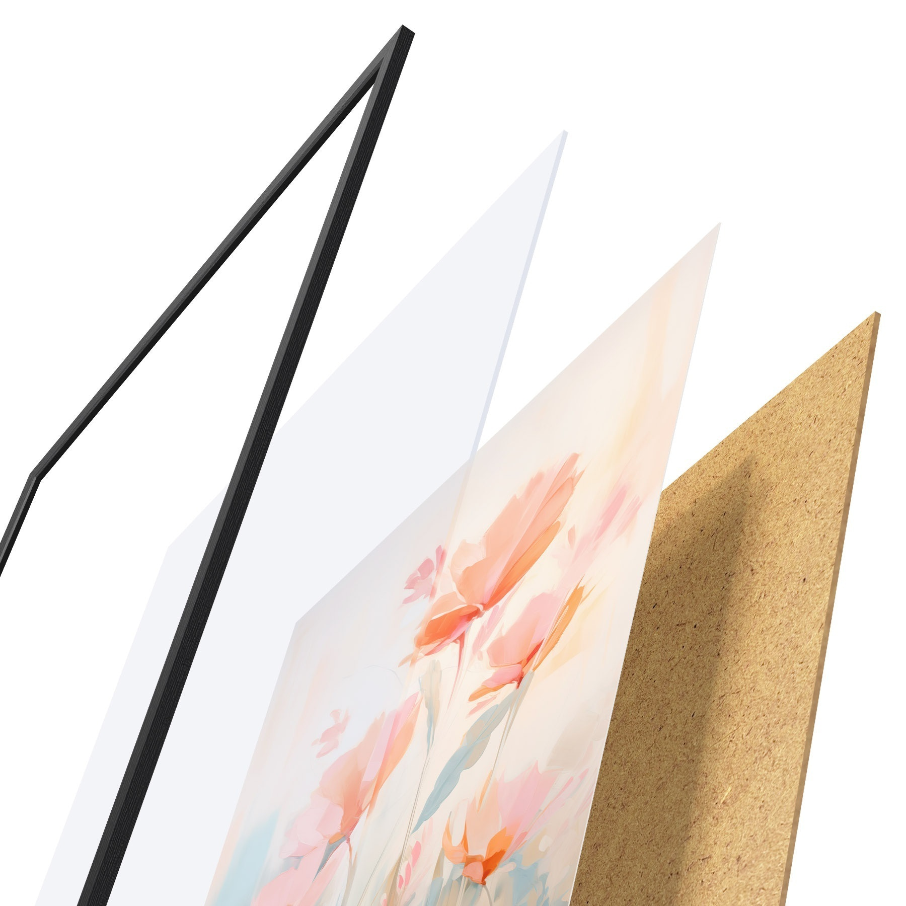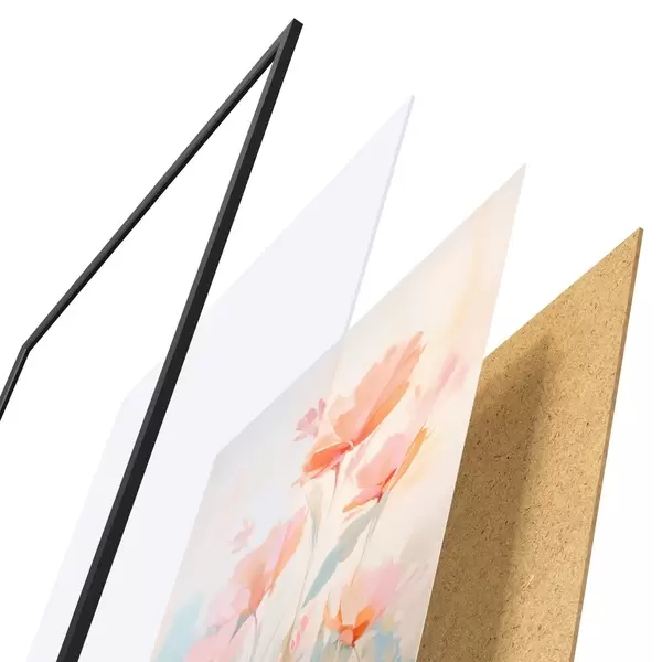 Plakatą sudaro rėmas, pleksiklas, atspausdintas vaizdas ir medžio drožlių plokštės pagrindas. Plakatą galima iš karto pakabinti ant sienos dėl kitoje pusėje esančių laikiklių.