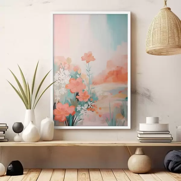 Plakatas Abstraktus gėlių peizažas rožinės ir mėlynos spalvų paletėje f46932