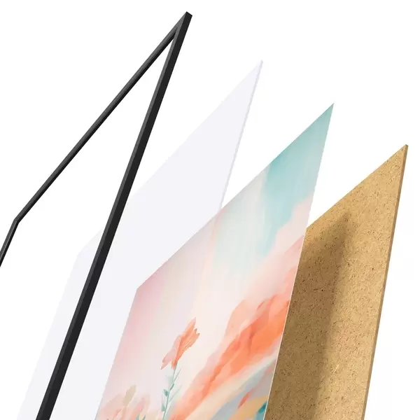 Plakatą sudaro rėmas, pleksiklas, atspausdintas vaizdas ir medžio drožlių plokštės pagrindas. Plakatą galima iš karto pakabinti ant sienos dėl kitoje pusėje esančių laikiklių.