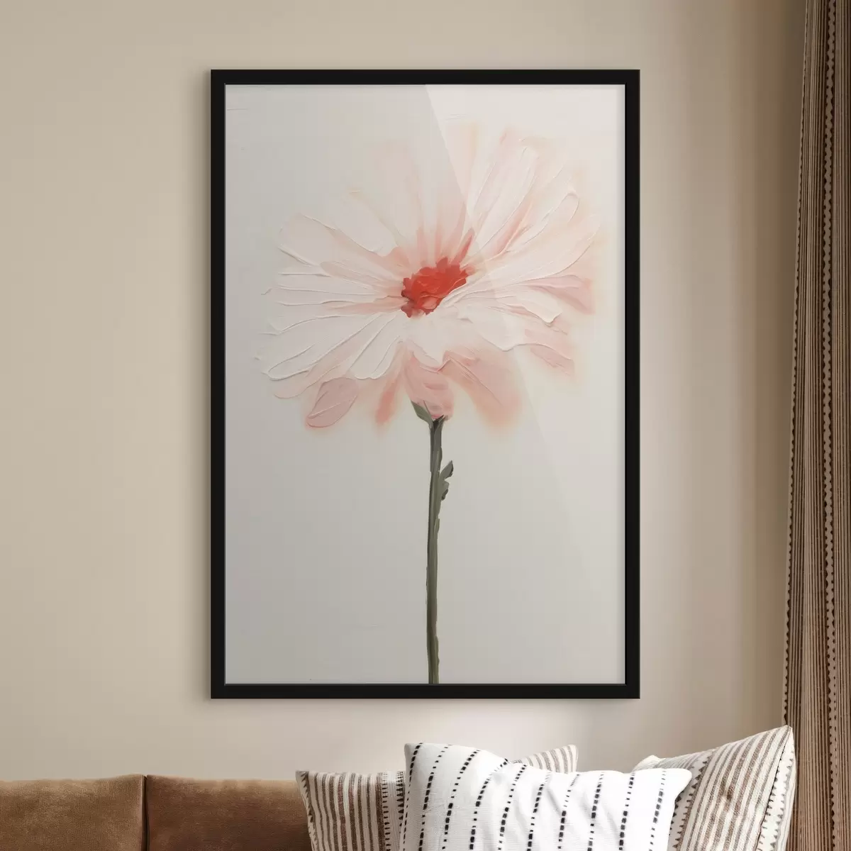 Plakatas Balta ir rožinė gėlė su išraiškingais potėpiais aliejaus tapybos stiliumi Ne f46933