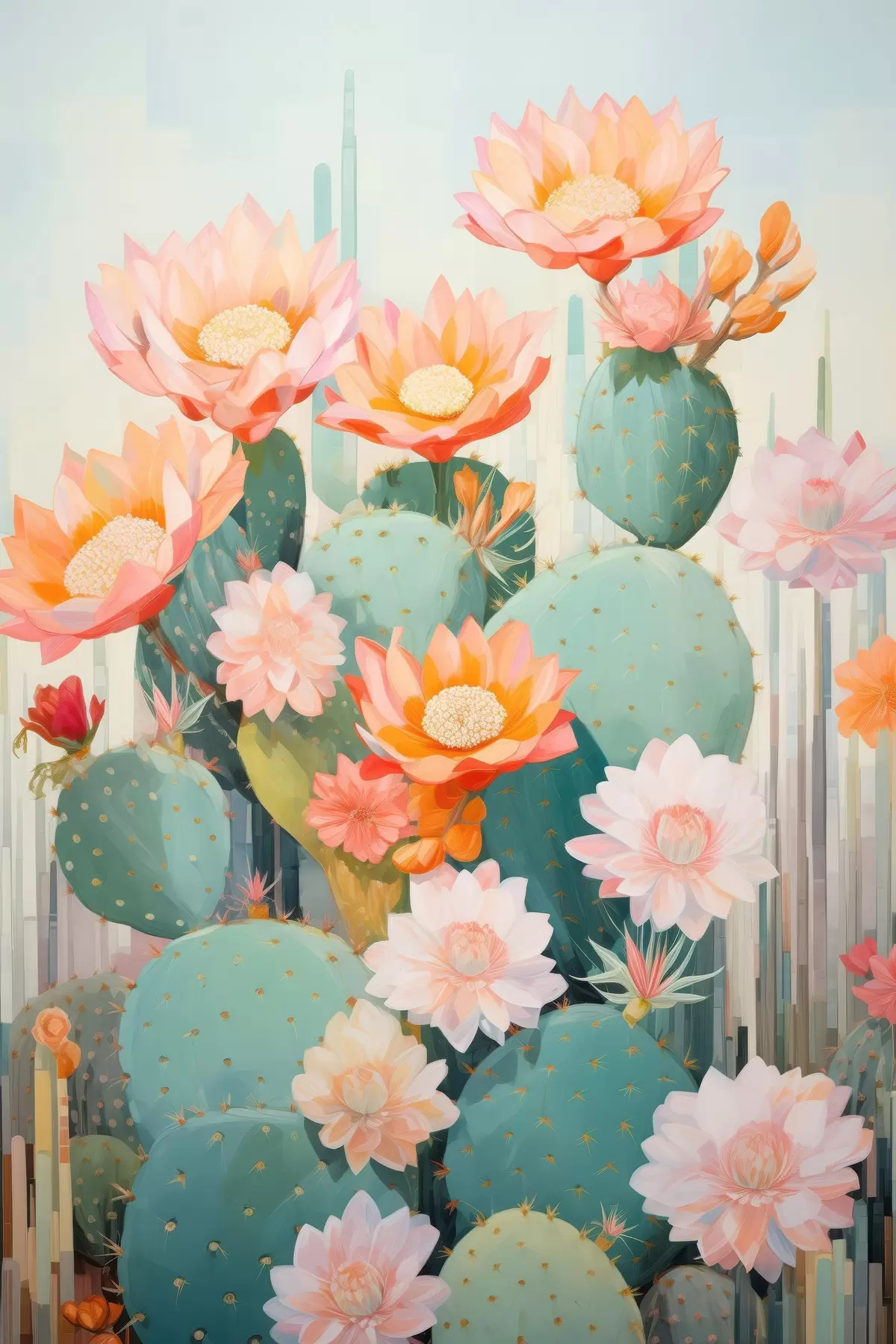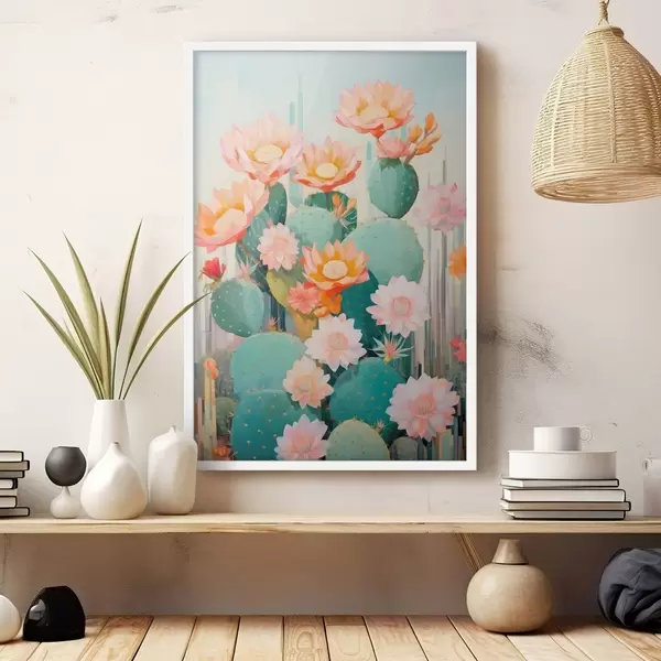 Plakatas Kaktusų gėlių sodas švelnios pastelinių spalvų paletės iliustracijos stiliumi f46935