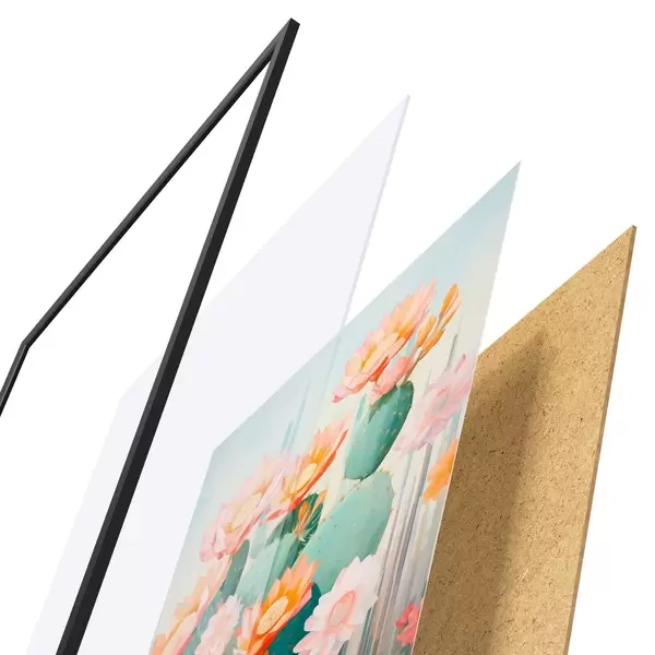Plakatą sudaro rėmas, pleksiklas, atspausdintas vaizdas ir medžio drožlių plokštės pagrindas. Plakatą galima iš karto pakabinti ant sienos dėl kitoje pusėje esančių laikiklių.
