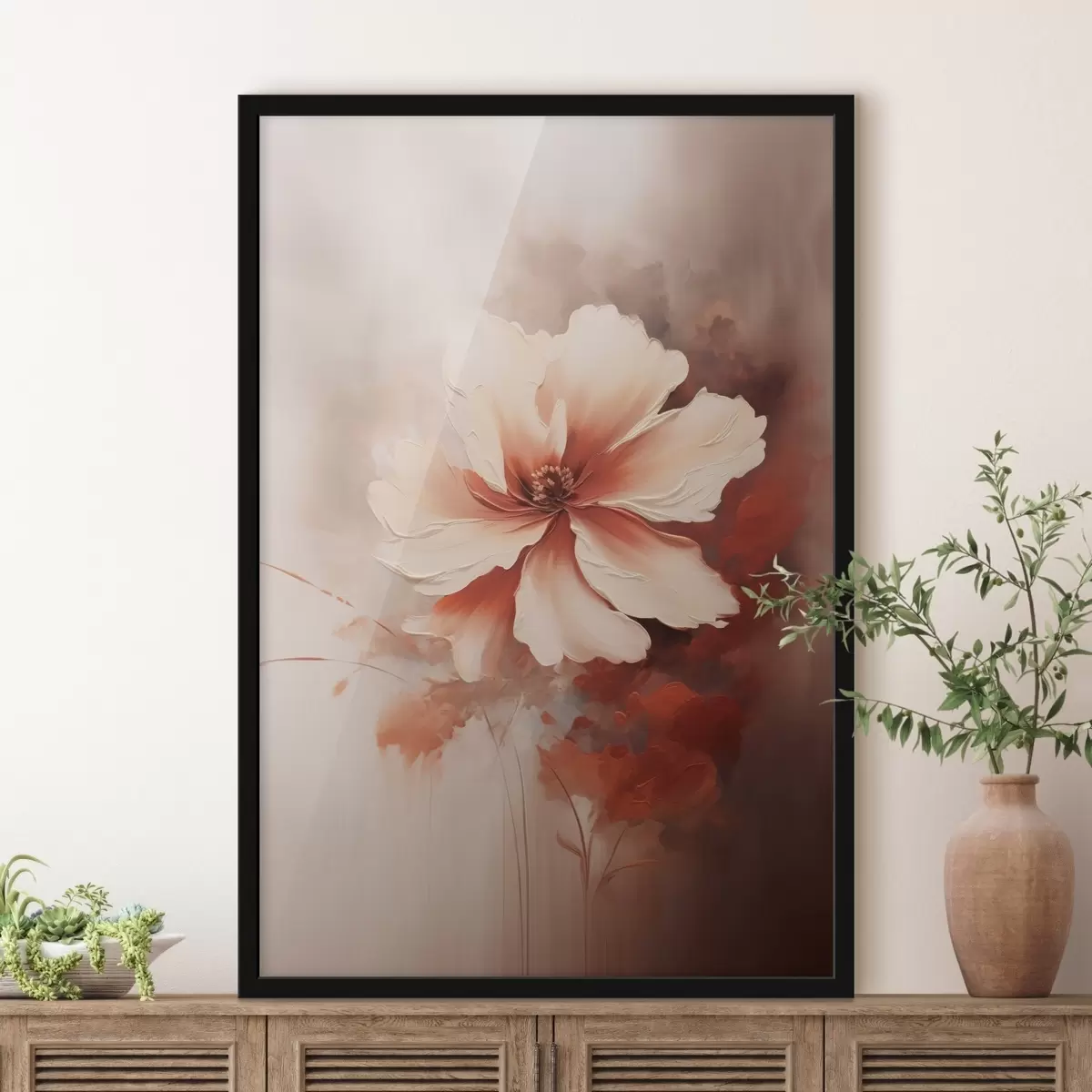 Plakatas Subtilus baltas koralų žiedas ant neryškaus fono, nutapytas aliejaus tapybos stiliumi f46938