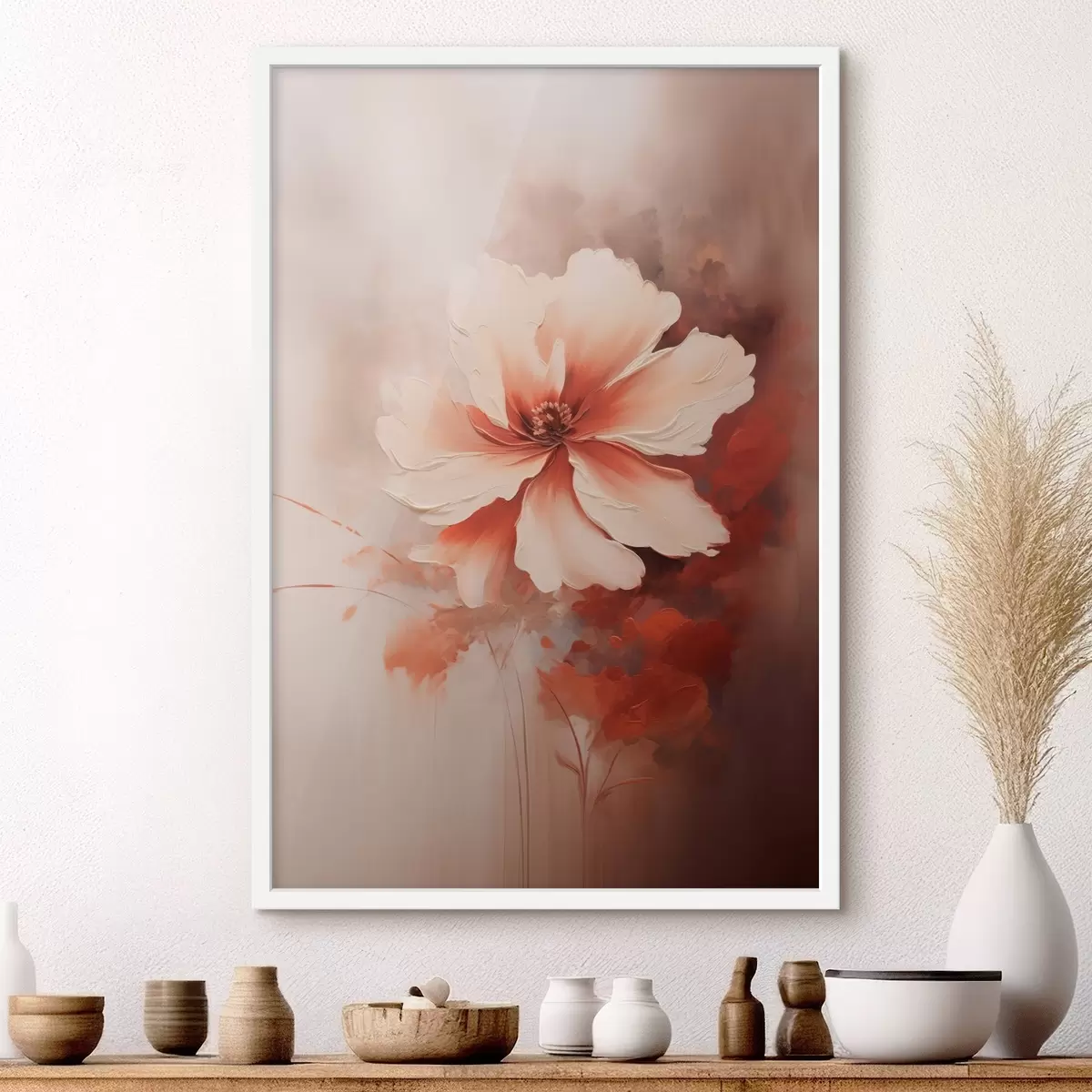Plakatas Subtilus baltas koralų žiedas ant neryškaus fono, nutapytas aliejaus tapybos stiliumi Ne f46938