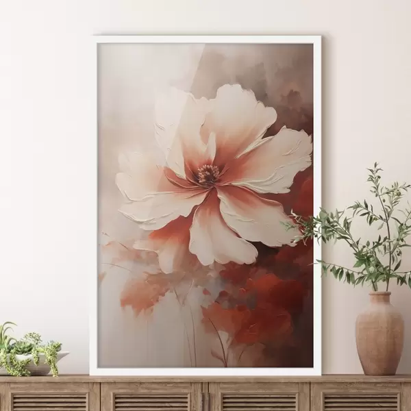 Plakatas Artimas baltos koralų gėlės vaizdas ant neryškaus fono, tapybos stiliumi f46939