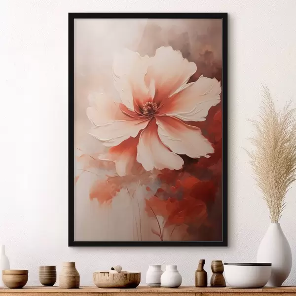 Plakatas Artimas baltos koralų gėlės vaizdas ant neryškaus fono, tapybos stiliumi Ne f46939
