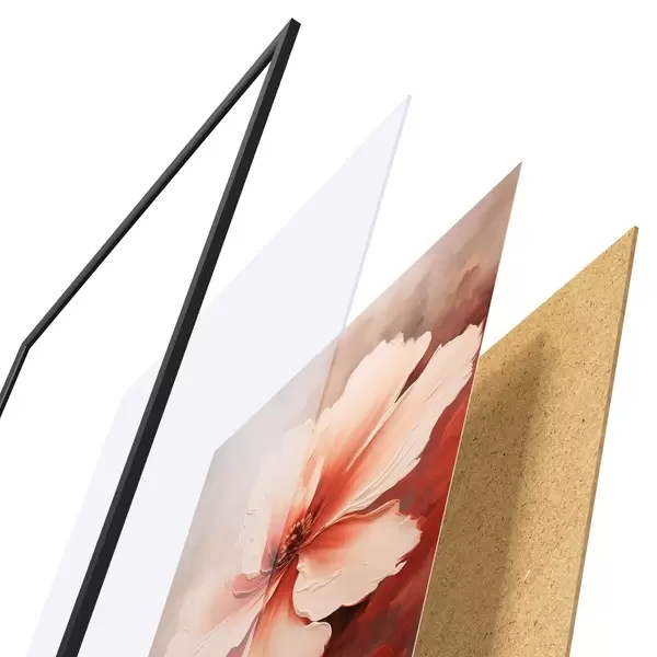 Plakatą sudaro rėmas, pleksiklas, atspausdintas vaizdas ir medžio drožlių plokštės pagrindas. Plakatą galima iš karto pakabinti ant sienos dėl kitoje pusėje esančių laikiklių.
